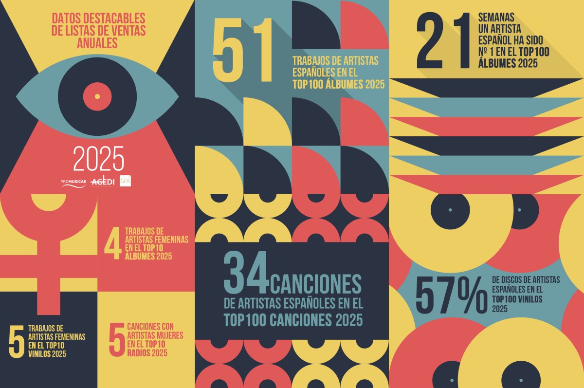 En términos de cifras de ventas equivalentes, la conversión de todas estas escuchas a álbumes vendidos equivaldría a un total de 40 millones de álbumes adquiridos por los consumidores (en formato físico o digital), 10 millones más que en el 2024, una cifra importante, pero aún lejos del pico máximo de 57 millones alcanzados en 2002.
