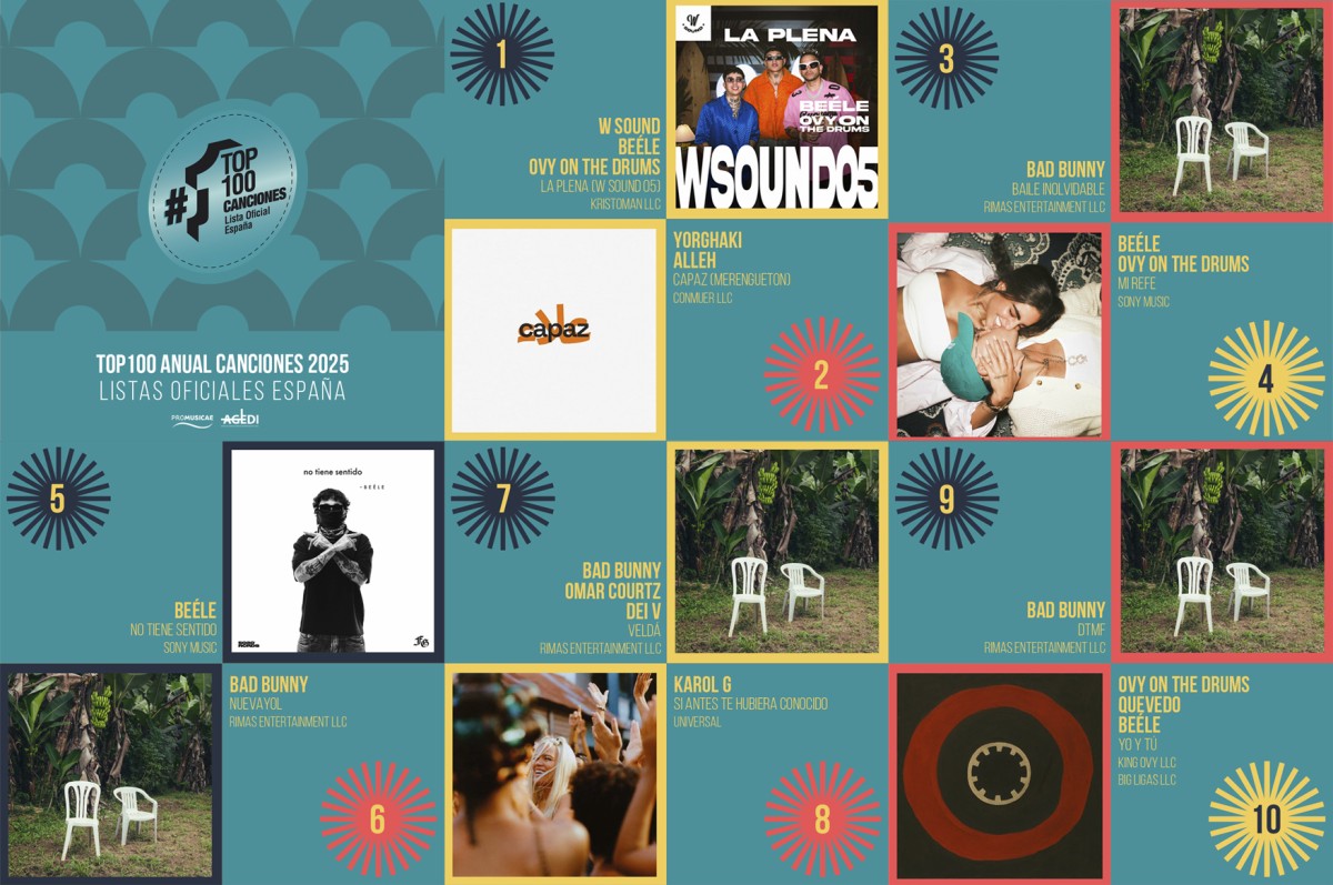 El Top 100 Canciones 2025 mantiene la imbatible presencia de canciones en español con 90 posiciones, de las que 34 corresponden a artistas españoles.